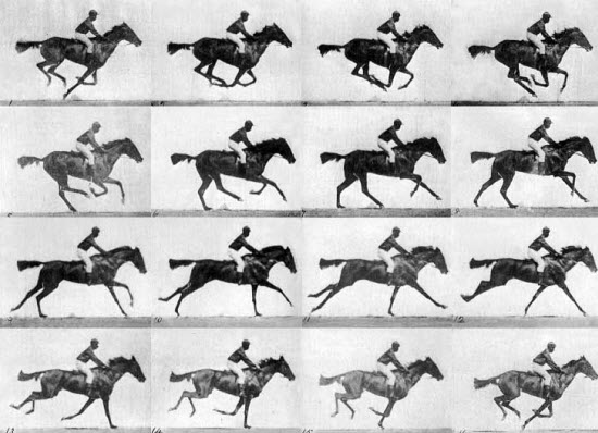 ۵- اسب در حال حرکت، عکس هایی که توسط ادوارد مویبریج در سال ۱۸۸۲ گرفته شد: در سال ۱۸۷۸، لئونارد استنفورد، فرماندار سابق کالیفرنیا، مأموریتی به عکاسی به نام ادوارد مویبریج داد تا یک نظریه را ثابت کند: اسب در حال چهارنعل رفتن، هر چهار پایش را از سطح زمین جدا می کند.