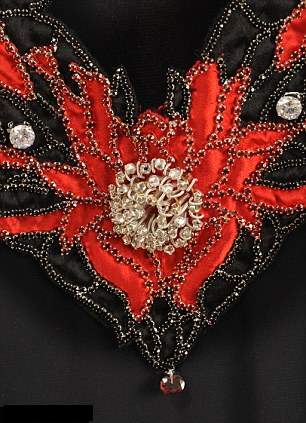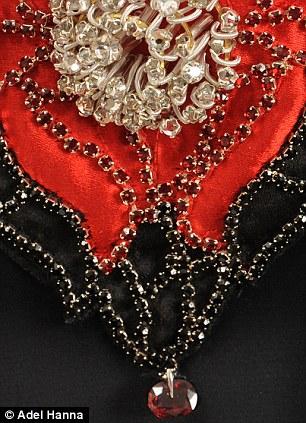 این لباس که ۵۰ الماس دو قیراطی سیاه و ۵۰ الماس دو قیراطی سفید دارد، از طراحی اسلامی بهره برده ، اما آنچه آنرا خیلی گران کرده، وجود نادرترین الماسهای سرخ رنگ جهان در آن است.