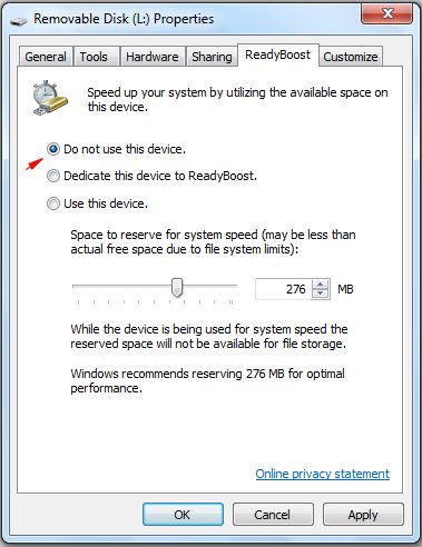 ۱- بر روی درایو USB کلیک راست کرده و روی آخرین گزینه Properties کلیک کرده ، به تب ReadyBoost  بروید