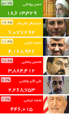 در پی پایان شمارش آرای انتخابات یازدهم ریاست جمهوری ، حسن روحانی با کسب  ۱۸ میلیون و ۶۱۳ هزار و ۶۲۹ رأی برنده انتخابات شد و از ۱۲ مرداد ۱۳۹۲ ، رسماً رئیس جمهور جدید ایران خواهد شد.