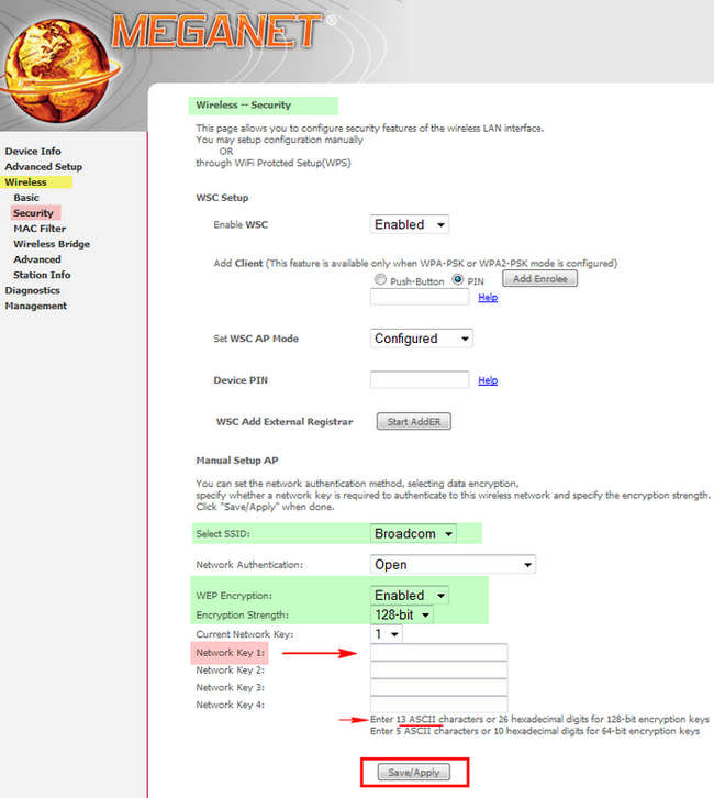 بخش WLAN گزینه Security و یا بالعکس موارد مختلفی مثل WEP,WPAو,WPA۲ وجود دارد که بهتر است از WPA۲ استفاده کنید اگر چنین گزینه هایی را پیدا نکردید از Encryption وارد شوید و نوع کدنگاری WEP را فعال Enable کنید و یک رمز (key) وارد نمایید (رمز ۱۳ رقمی )