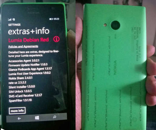 2014-08-08_223145نکته جالب در مورد مشخصات این گوشی طبق شایعات مربوط به وضوح نامتعارف ۶.۵ مگاپیکسلی آن است و نسخه‌ای از ویندوزفون به نام Debian Red است. این نسخه از ویندوزفون ممکن است نسخه بعد از Cyan باشد و شاید هم یک نام رمز باشد (مثل نام رمز Cherry Blossom Pink برای Cyan). به هر حال اگر طبق روال حروف الفبا پیش برویم پس از آپدیت Black و Cyan حالا نوبت آپدیتی است که با حرف D آغاز خواهد شد.