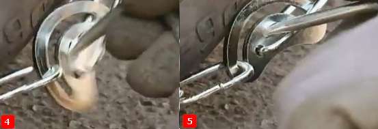 ۴- سمت دیگر زنجیر را که یک سر آن گیره ای پهن و خمیده دارد را به ترتیب مطابق شکل زیر از حلقه سر دیگر زنجیر عبور دهید و در بین حلقه بست نگهدارنده قرار دهید.