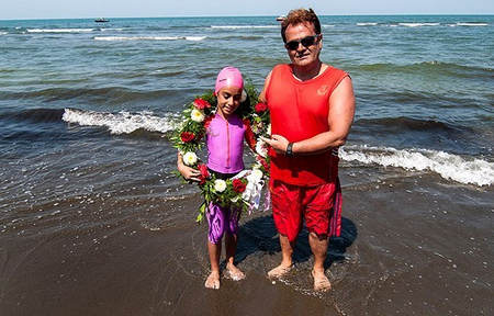تصاویری از رکورد زدن دختر بچه ۱۰ ساله گیلانی (ساینا آتشین) ساینا آتشین شناگر ۱۰ ساله گیلانی به عنوان نخستین دختر ایرانی یکشنبه ۲۵ مرداد ۱۰ کیلومتر و۲۰۰ متر در دریای خزر در محدوده سنگاچین ...
