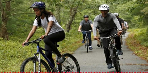 خبر اینترفر – رئیس جمهور آمریکا (باراک اوباما) به همراه خانواده تعطیلات تابستان به جزیره مارتا در ایالت ماساچوست آمریکا رفتند. تصاویر زیر دوچرخه سواری اوباما به همراه دخترانش در این جزیره است.