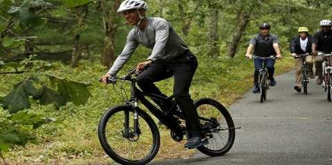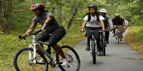 تفریح و دوچرخه سواری اوباما با دخترانش + عکس