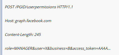 2015-08-31_212556که در آن PGID متعلق به تجارت B است، و یک نفر می‌تواند درخواست manage_page را بفرستد تا کاربرX به عنوان MANAGER (دسترسی مدیر صفحه را اختصاص می‌دهد) صفحه شناخته شود.