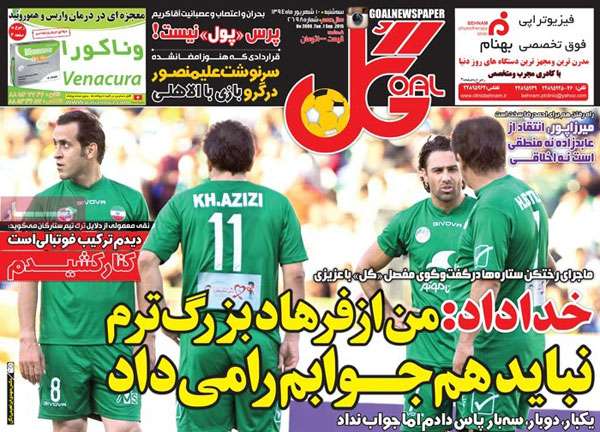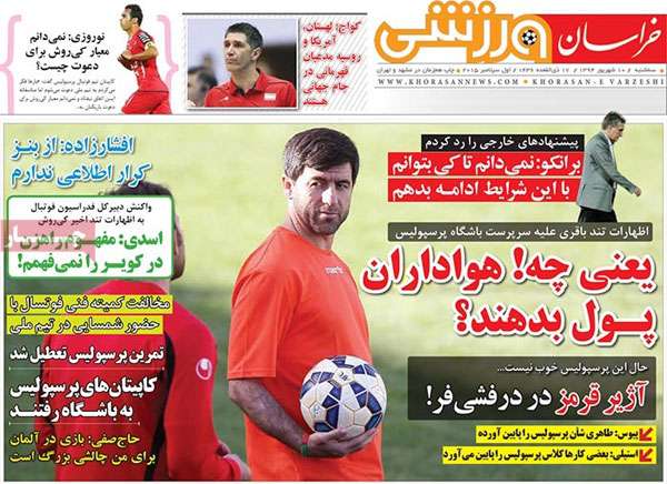 به گزارش خبر شبکه اینترفر – همشهری,آرمان,اعتماد,کیهان,هفت صبح,مردم سالاری,آفتاب,جام جم,ایران,شرق,دنیای اقتصاد,عصراقتصاد ,کسب و کار,جهان صنعت,بانی فیلم,خبر ورزشی,گل,پیروزی,استقلال,۹۰,ایران ورزشی, ابرار ورزشی,خراسان ورزشی