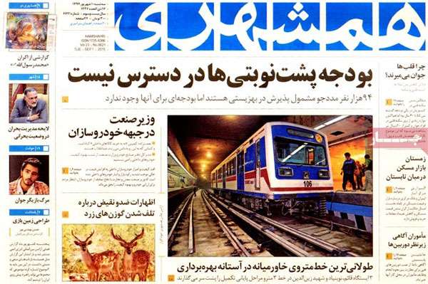 مروری بر مهمترین عناوین روزنامه های صبح امروز ۱۰ شهریور ۱۳۹۴