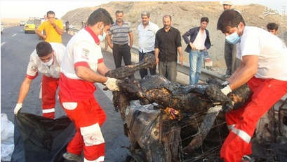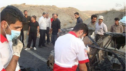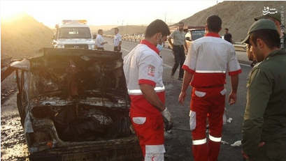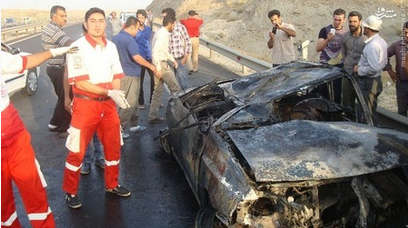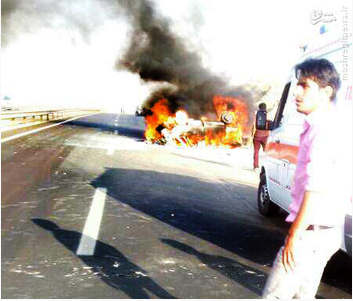 روز یکشنبه ۱۵ شهریور در محور همدان بر اثر برخورد یک خودرو پراید با مانع دچار واژگونی و آتش سوزی شد و دو نفر سرنشین آن در آتش سوختند . تصاویر حادثه: