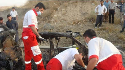 روز یکشنبه ۱۵ شهریور در محور همدان بر اثر برخورد یک خودرو پراید با مانع دچار واژگونی و آتش سوزی شد و دو نفر سرنشین آن در آتش سوختند . تصاویر حادثه: عکس / پراید ...