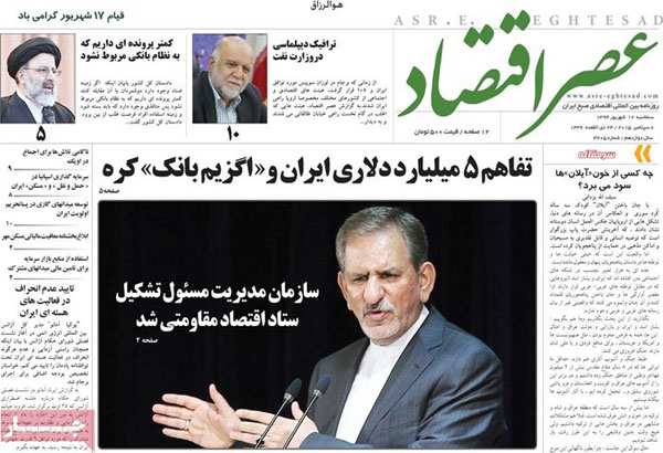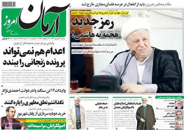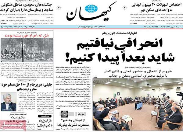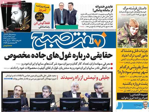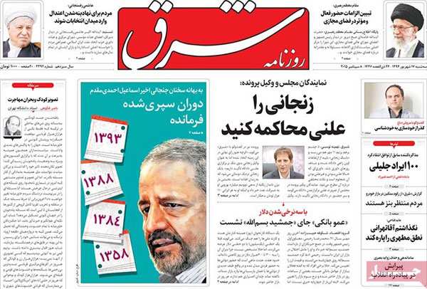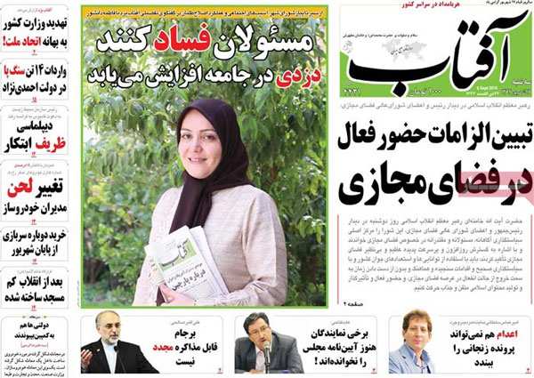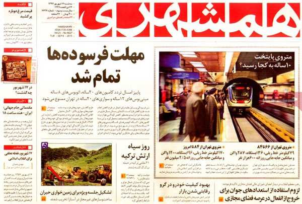 عناوین امروز روزنامه های صبح کشور (سه شنبه ۱۷ شهریور ۹۴) ، تصاویر و تیتر خبری صفحه اول روزنامه های ابرار ، همشهری ، آفتاب ، صنعت ، جام جم ، اطلاعات ، کیهان ، ...