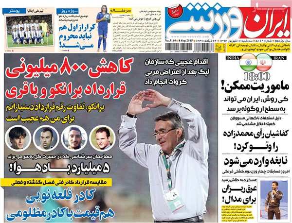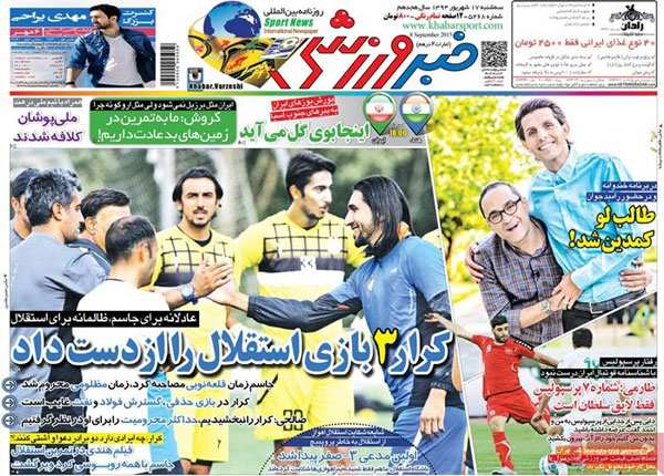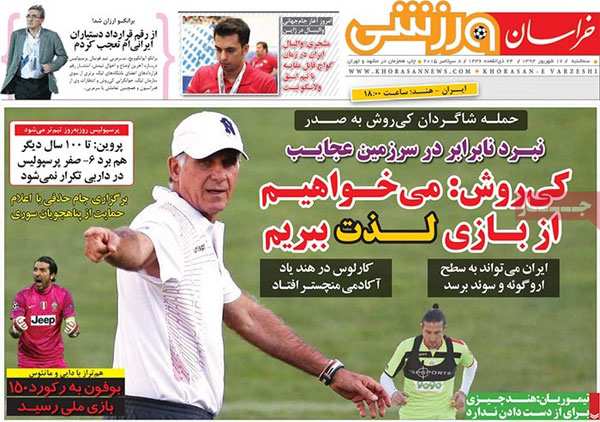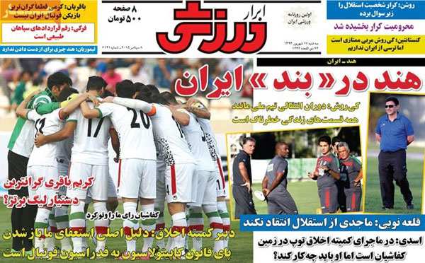 عناوین امروز روزنامه های صبح کشور (سه شنبه ۱۷ شهریور ۹۴) ، تصاویر و تیتر خبری صفحه اول روزنامه های ابرار ، همشهری ، آفتاب ، صنعت ، جام جم ، اطلاعات ، کیهان ، روزنامه های ورزشی ، نود ، خبر ورزشی …