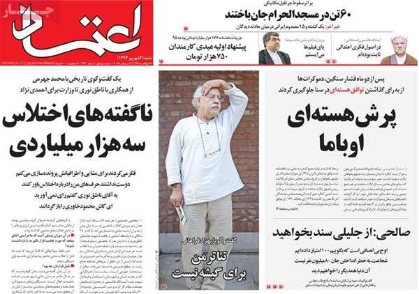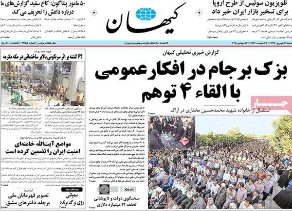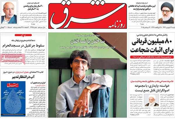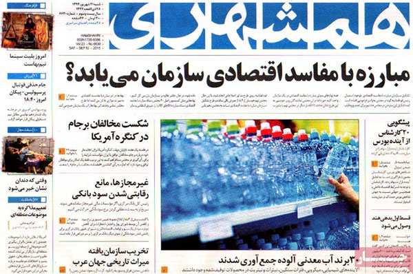 تیتر و عناوین روزنامه های امروز شنبه ۱۳۹۴/۰۶/۲۱