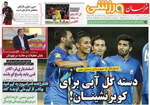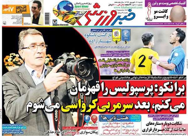 تیتر و عناوین خبرهای روزنامه های مهم صبح کشور ۲۱ شهریور ۹۴ روزنامه های اجتماعی ، اقتصادی ، سیاسی ، ورزشی: همشهری ، ابرار ، ایران ، جام جم ، کیهان ، بانی فیلم ، خبر ورزشی ، اقتصاد ایران و…