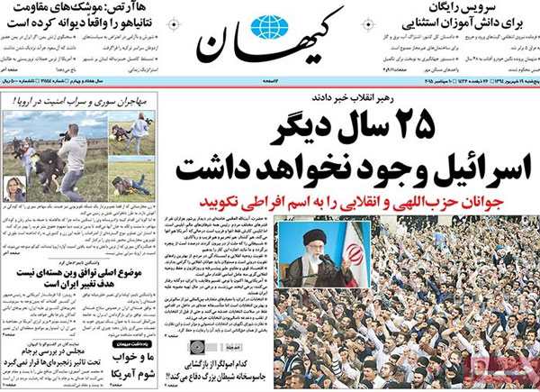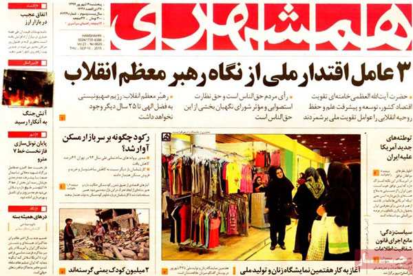 تیتر و عناوین روزنامه های امروز پنجشنبه ۱۳۹۴/۰۶/۱۹