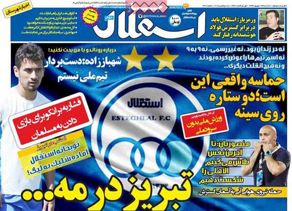 عناوین مهمترین روزنامه های رسمی صبح کشور ، امروز سه شنبه ۲۴ شهریور ۹۴ / تصویر صفحه اول روزنامه های ایران ، همشهری ، ابرار ، خبر ورزشی ، خبر اقتصادی ، بانی فیلم ، روزنامه صبا …