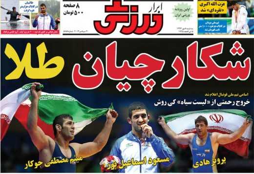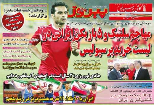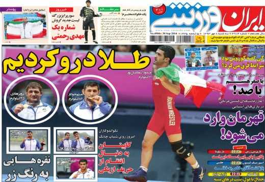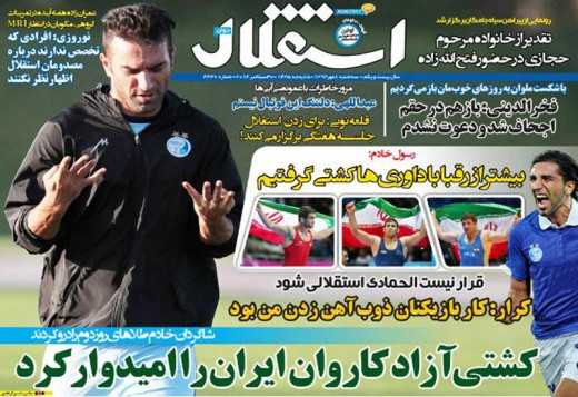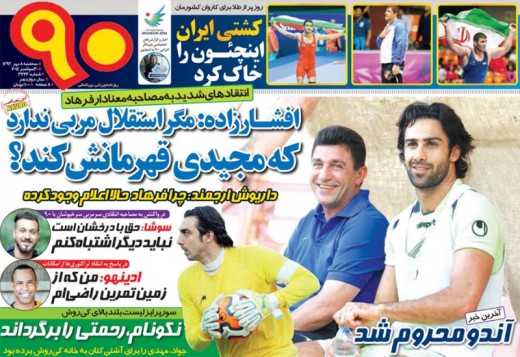 تصویر صفحه اول روزنامه های ورزشی امروز چهارشنبه ۸ مهر ۱۳۹۴ روزنامه های رسمی صبح کشور خبر ورزشی ، ۹۰ ، استقلال ، ایران ورزشی ، شوت ، پیروزی تیتر و عناوین روزنامه های ورزشی ...