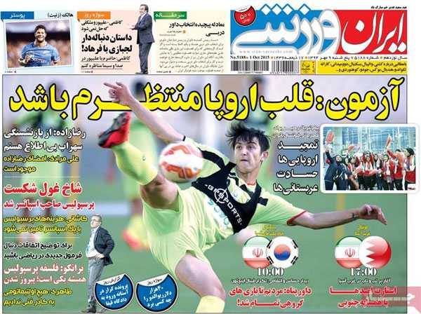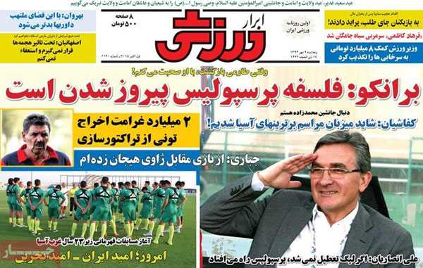 امروز پنجشنبه ۹ مهر ۱۳۹۴ در روزنامه های رسمی صبح کشور چه خواهید خواند؟ در صفحه اول روزنامه های امروز از جمله همشهری ، کیهان ، ابرار ، جام جم ، آرمان ، اعتماد، آفتاب ...