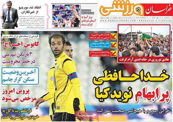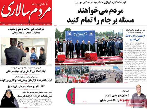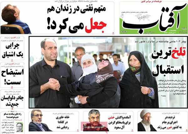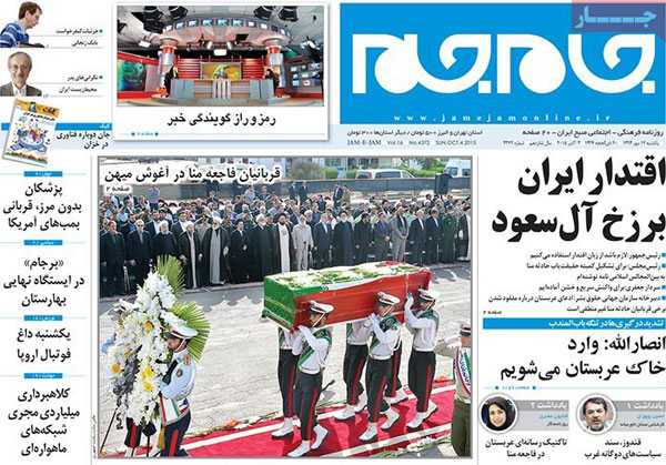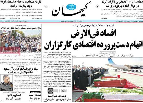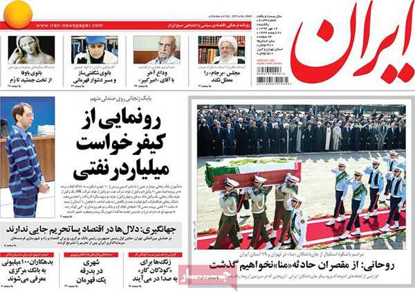 روزنامه های امروز یکشنبه ۱۲ مهر ۹۴ چه منتشر کردند؟ تیتر و عناوین مهم روزنامه های رسمی صبح کشور به موضوعات : آتش سوزی در وزارت کشور ، اتهام میلیاردی نفتی به متهم ب.ز ، آمادگی سپاه برای پاسخ به آل سعود ، فاجعه منا در عربستان ، درگذشت هادی نوروزی ، برجام ، کاهش نرخ سود بانکی و.. پرداخته است.
