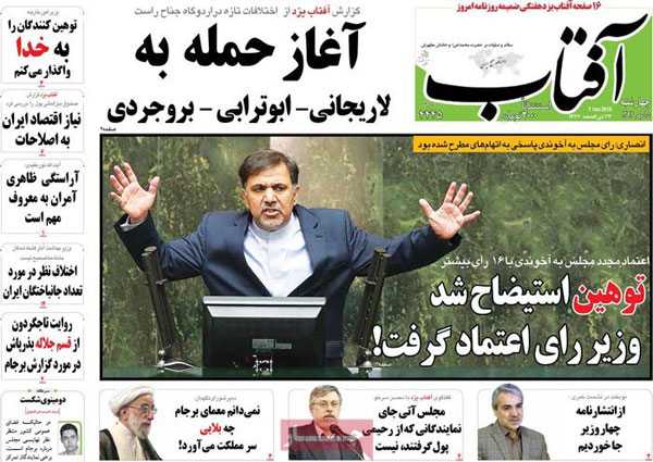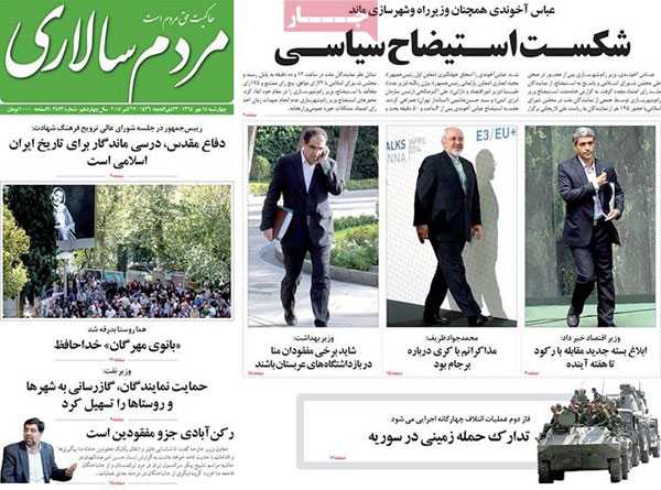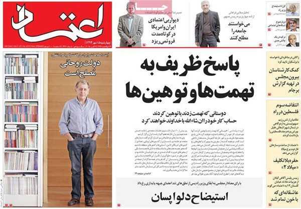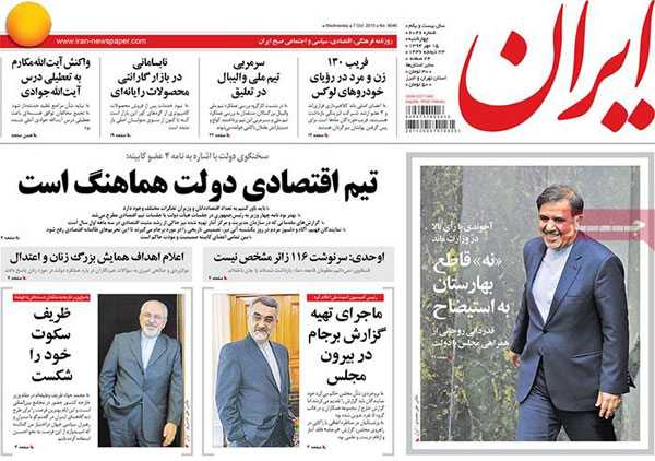 روزنامه های امروز چهارشنبه ۱۵ مهر ۹۴ چه چاپ کردند؟ تصویر صفحه اول روزنامه های مهم خبری صبح کشور با عناوین : استیضاح دلواپسان ، خداحافظی با هما روستا ، پاسخ ظریف به تهمت ها ...