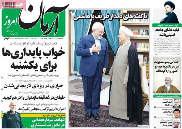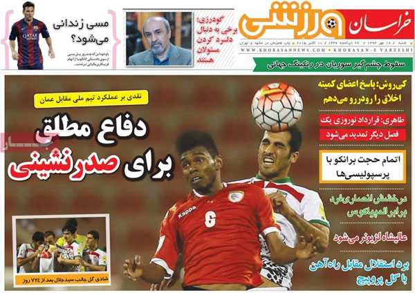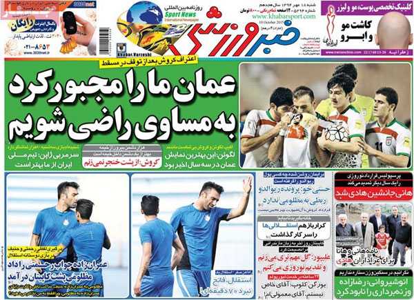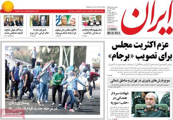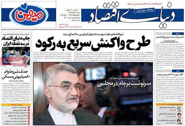 در خبر روزنامه های امروز صبح کشور (شنبه ۱۸ مهر ۱۳۹۴) خواهید خواند : تیتر و عناوین مهمترین روزنامه های رسمی کشور به بررسی موضوع برجام در مجلس ، شهادت سردار حسین همدانی ، نجات باران کوثری از مرگ حتمی در سانحه تصادف ، افزایش بیکاری با شیب ملایم، فاساد نفتی و پرونده ب .ز ، ابهامات نامه ۴ وزیر ، گل سید جلال در دقیقه ۲۴ نمیه دوم …