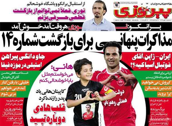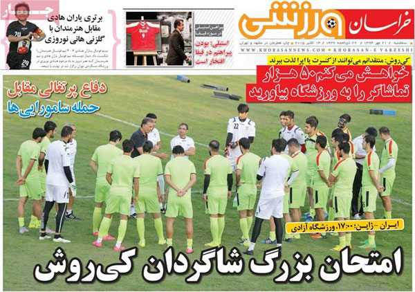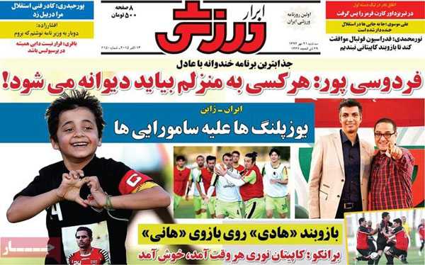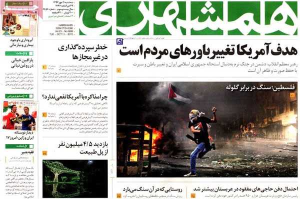صفحه اول روزنامه های امروز سه شنبه ۲۱ مهر ۱۳۹۴ / روزنامه های امروز سه شنبه با عناوین : هدف آمریکا ، واکنش هاشمی به برجام ، حضور عادل فردوسی پور در خندوانه ، رئیس جمهور روحانی در جمع مردم مازندران ، هانی به جای هادی بازی در پرسپولیس و … منتشر شد.