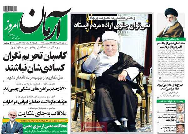 صفحه اول روزنامه های امروز سه شنبه ۲۱ مهر ۱۳۹۴ / روزنامه های امروز سه شنبه با عناوین : هدف آمریکا ، واکنش هاشمی به برجام ، حضور عادل فردوسی پور در خندوانه ، رئیس ...