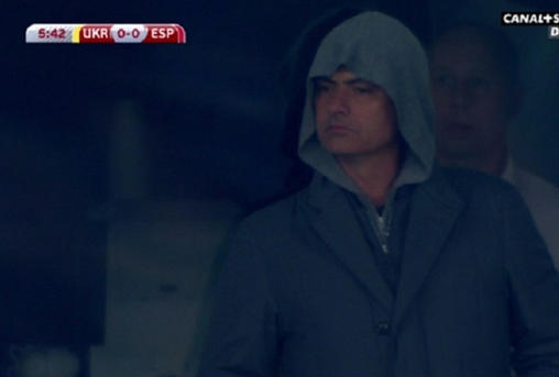 مورینیو در ورزشگاه اوکراین با لباسی عجیب نظاره گر بازی دو تیم اوکراین و اسپانیا + عکس