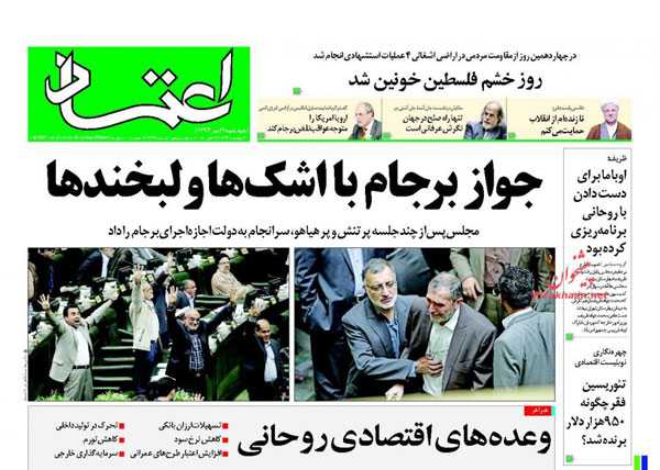 روزنامه های رسمی امروز چهارشنبه ۲۲ مهر با تیتر داغ در صفحه اول به موضوعات : برجام با اشک ها و لبخندها ، اشک دلواپسان ، پیگیری حادثه مکه، بزرگداشت حافظ ، فراخوان روحانی برای ...