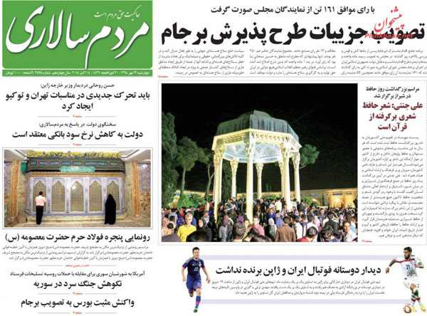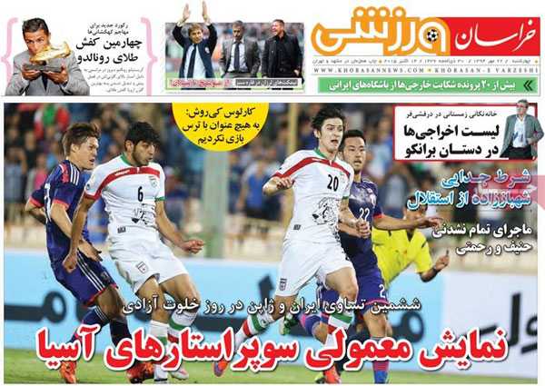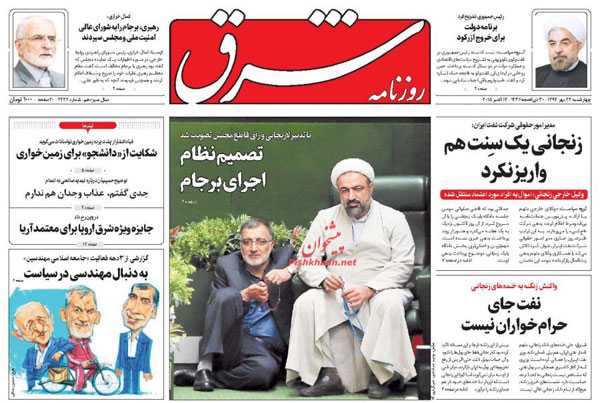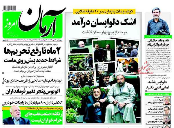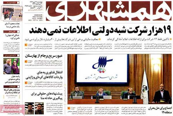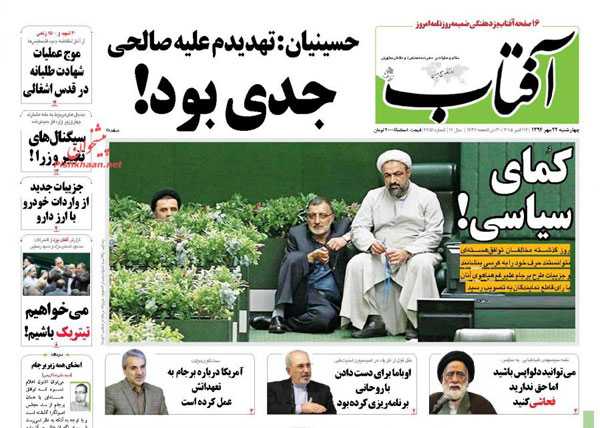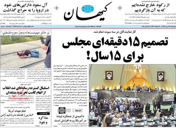 روزنامه های رسمی امروز چهارشنبه ۲۲ مهر با تیتر داغ در صفحه اول به موضوعات : برجام با اشک ها و لبخندها ، اشک دلواپسان ، پیگیری حادثه مکه، بزرگداشت حافظ ، فراخوان روحانی برای جهش اقتصادی، طلب کلاه پهلوی از تلویزیون ، فرار سامورایی ها از دست آریایی ها و.. پرداخته اند.