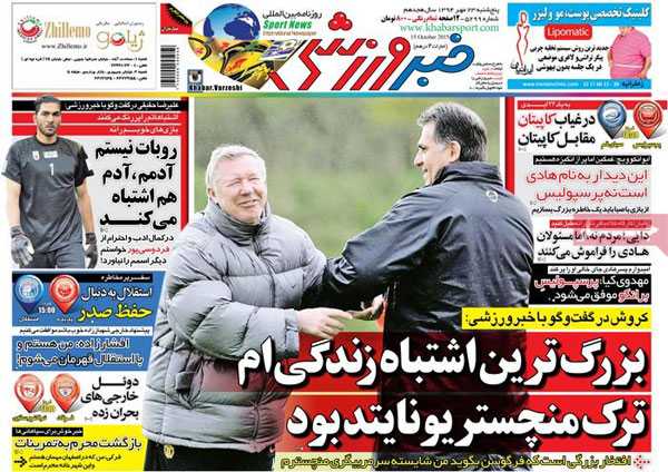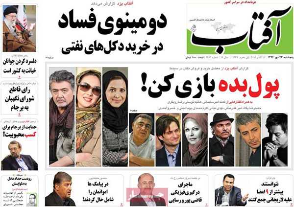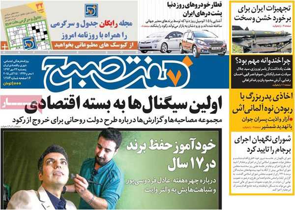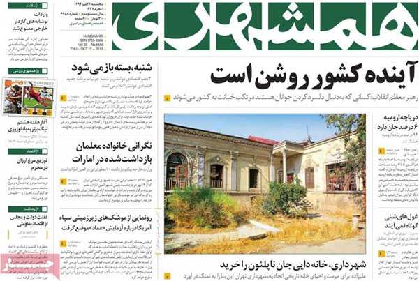 عناوین مهم روزنامه های پنجشنبه ۲۳ مهر ۹۴ ، روزنامه های همشهری ، ابرار، خبر ورزشی ، کیهان ، بانی فیلم ،؛ روزنامه های پنجشنبه در صفحه اول چه چاپ کردند: برجام از شورای نگهبان ...
