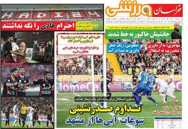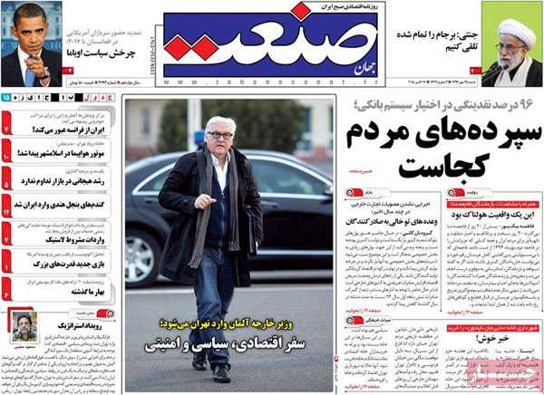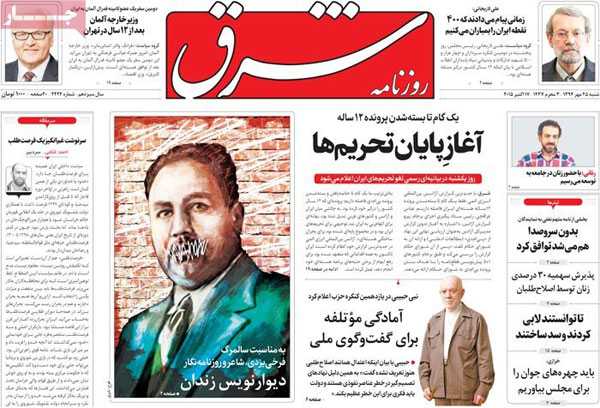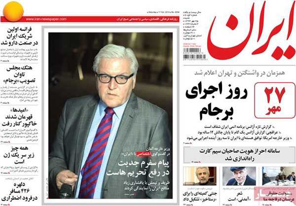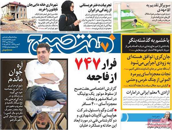 در روزنامه های امروز شنبه ۲۵ مهر ۹۴ خواهید خواند: تصویر صفحه اول روزنامه های خبر اجتماعی ، ورزشی ، اقتصادی صبح کشور با عناوین : اجرای برجام ، سفر وزیر آلمان به ایران ، مذاکره کنندگان خون دل خورده اند ، فرود اضطراری هواپیمای ۷۴۷ ایران ، پرسپولیس بی کاپیتان و…