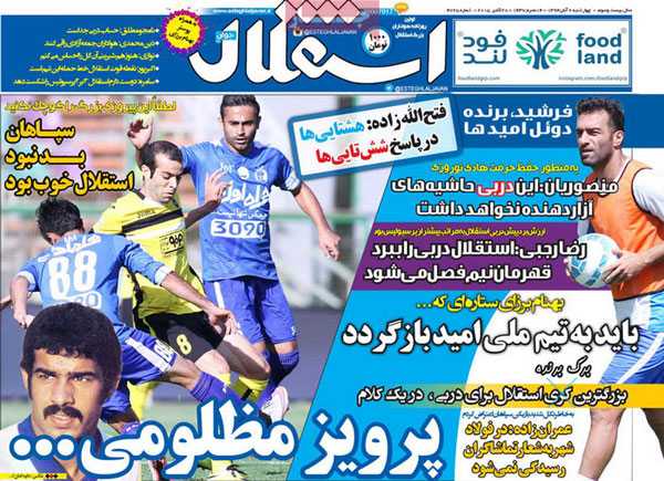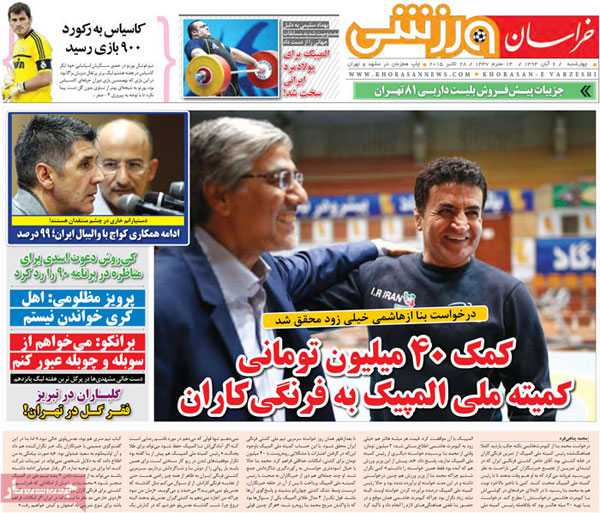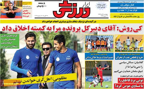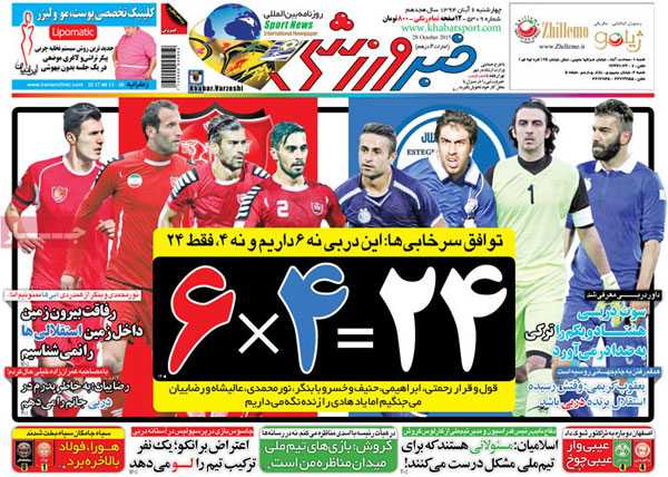 تیتر و عناوین خبری روزنامه های امروز چهارشنبه ۶ آبان ۹۴ به روایت تصویر / تصویر صفحه اول روزنامه های رسمی اجتماعی ، سیاسی ، فرهنگی و ورزشی ایران با عناوین : توافق سرخ آبی ...