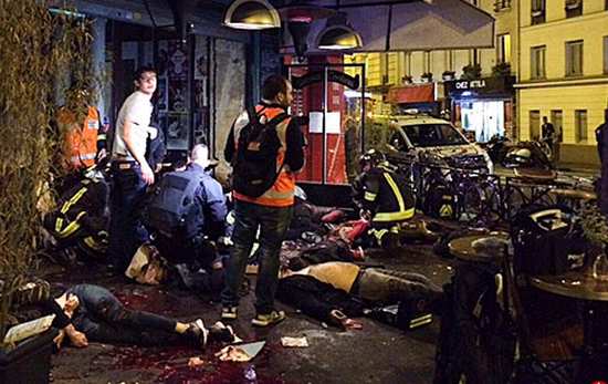 تصاویری از لحظه وقوع حادثه تروریستی توسط داعش در پاریس و کشته و زخمی شدن شهروندان فرانسوی
